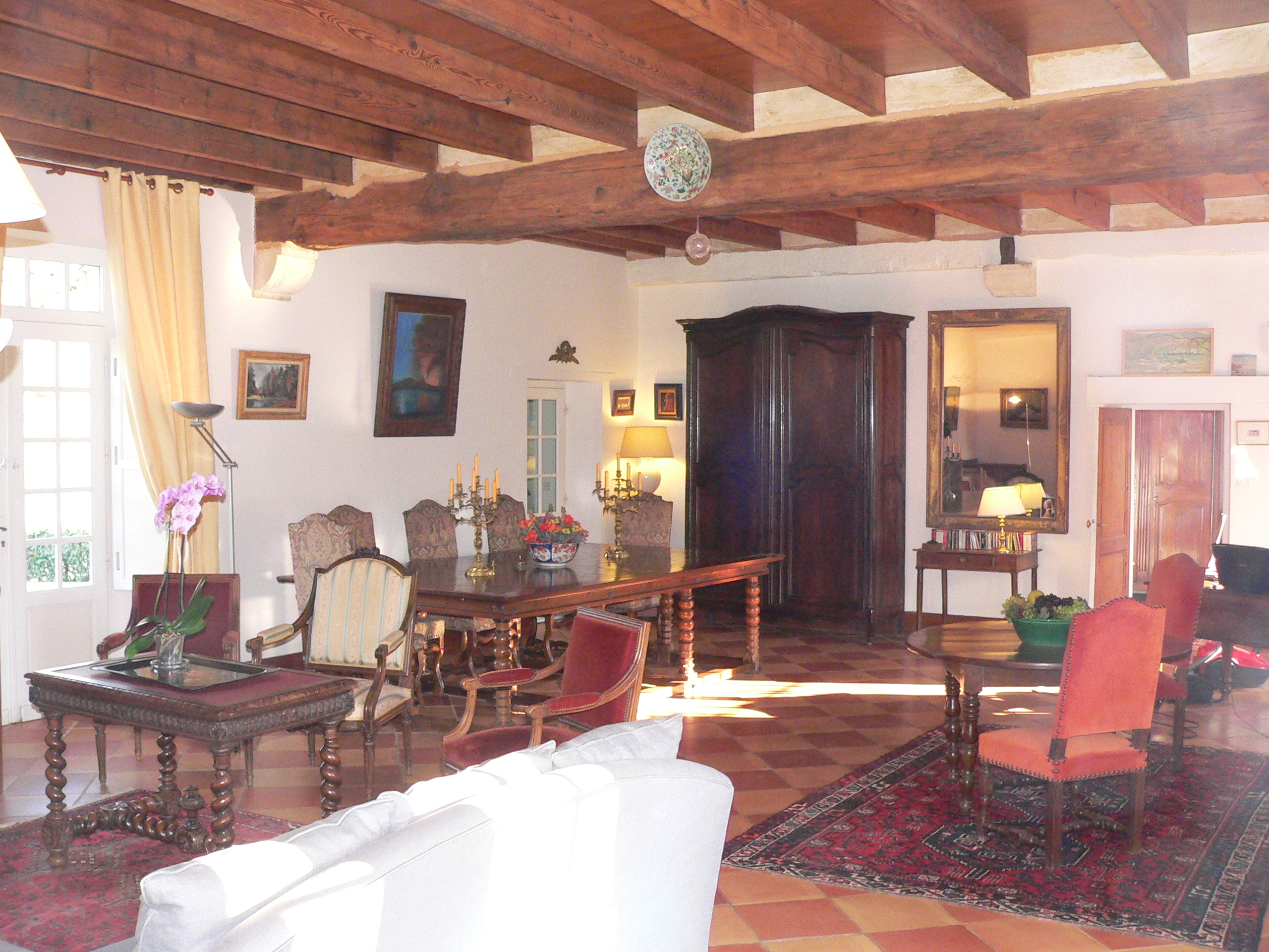 La maison (240 m² dont 170 m² de plain-pied) est dans un parc de 1 hectare clôturé au milieu d’un domaine entièrement entouré de bois. Rez de chaussée comportant 7 pièces dont séjour de 70 m2, grande cuisine, 2 chambres, salle de bains, wc indépendant, petite et grande entrée. Etage comportant 3 chambres, salle d’eau, wc, grand pallier. Jolie piscine privative de 10 x 4 avec margelle et plage en pierre locale de 10 m², exposée plein sud avec barrière de sécurité . Côté piscine auvent avec table et chaises de jardin pour 10 personnes. Idéale pour couples avec enfants. Chaise haute enfant, baignoire et lit bébé.